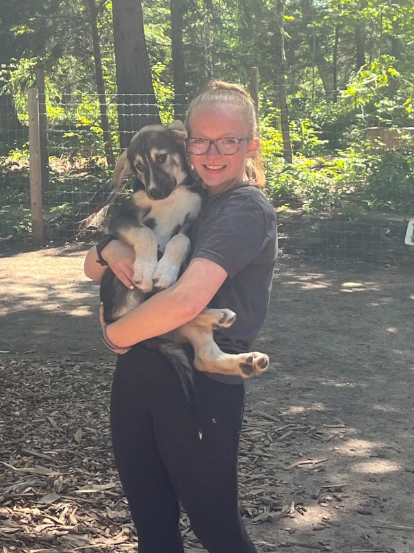 Aubrey's lifelong passion for sled dog racing began at a young age, attending races and now running her own sled dog team. In the summer, she volunteers and educates people about sled dogs through tours. Aubrey trains her dogs year-round for races, learning from mentors in the sport during the off-season.